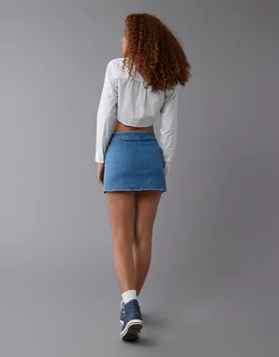 The mini skirt silhouette you know and love, now in a high-stretch denim with shorts underneath.