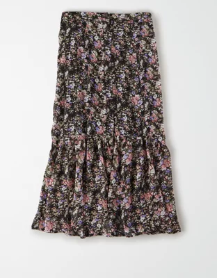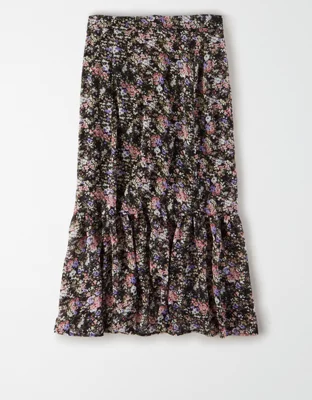 Feminine and flattering. This skirt is midi length and features an all over floral print. Pair it with a go-to graphic tee.