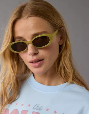 Walking on sunshine! Featuring a retro-inspired oval silhouette, these shades are the perfect finish to any 'fit.
