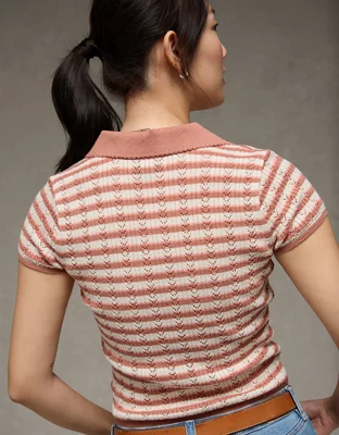 Constructed from a delicately textured pointelle knit, this sweater polo is a preppy wardrobe staple. Goes just as well with a skirt as a pair of jeans.