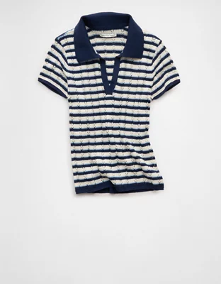 AE Short-Sleeve Pointelle Sweater Polo