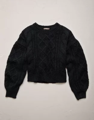Featuring a luxe knit cable pattern that's spun from super soft Italian yarns, this luxe sweater with dreamy ballooned sleeves is a warm and cozy essential.