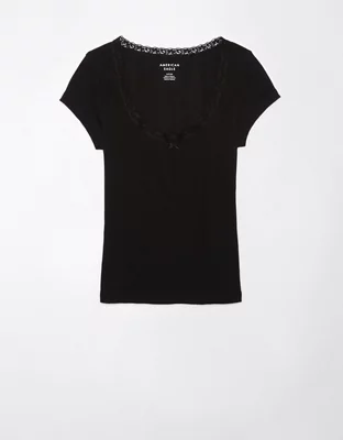 A new take on our '90s-inspired Hey Baby tee, now with feminine lace trim & comfy ribbed texture that holds you in. It's perfect for layering, rocking solo & feeling good.