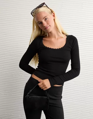 AE Lace-Trim Long Sleeve T-Shirt