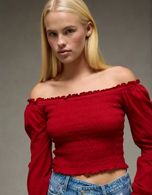 AE Sunchaser Off-the-Shoulder Smocked Tee