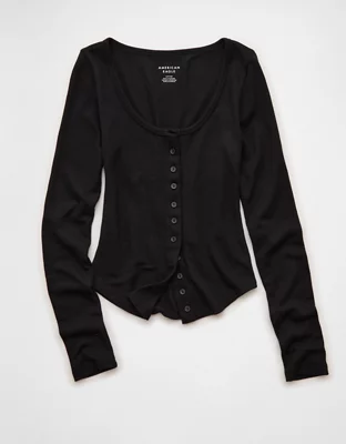 Constructed in a cozy waffle fabrication, this tee buttons all the way up and features a low scoop neck—a perfect baselayer and chic enough to be worn on its own!