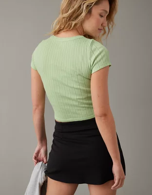 AE Cropped Pointelle Hey Baby Tee