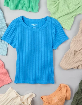AE Cropped Pointelle Hey Baby Tee