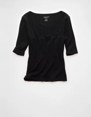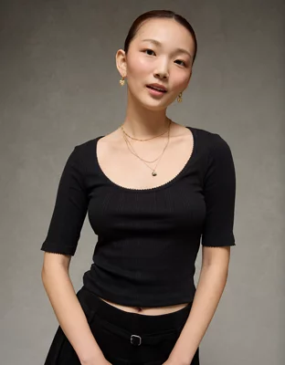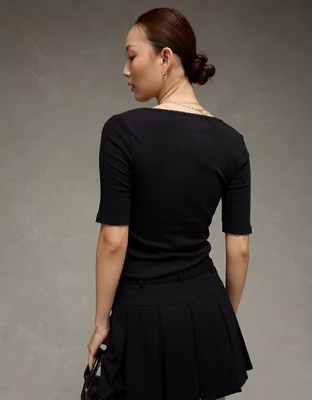 AE Half-Sleeve Scoop Neck Pointelle T-Shirt