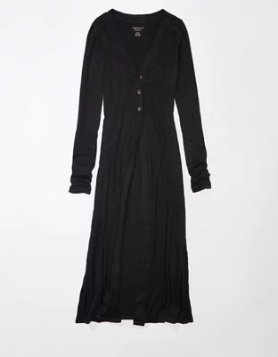 A comfy cardigan with a dramatic sweeping silhouette and delicate buttons.