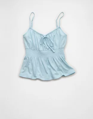 Warmer days are ahead. Chase the sun in this smocked cami, featuring a tie-front.