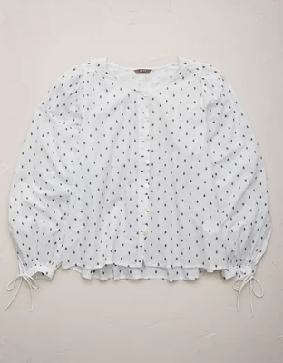AE Embroidered Balloon-Sleeve Button-Up Shirt