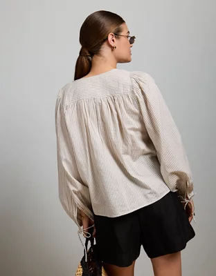 AE77 Balloon-Sleeve Button-Up Shirt