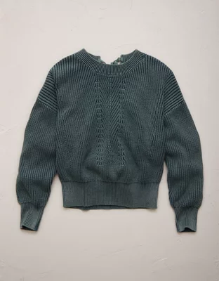 AE77 Open-Back Shaker Stitch Sweater