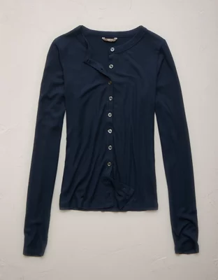 Crafted from a soft and stretchy ribbed fabrication, this button-up tee is an elevated take a timeless style.