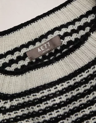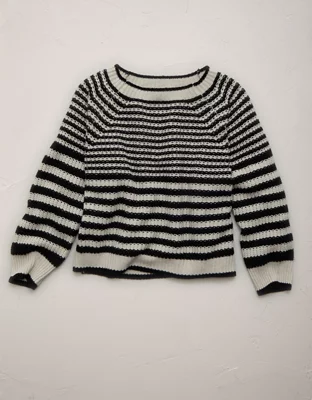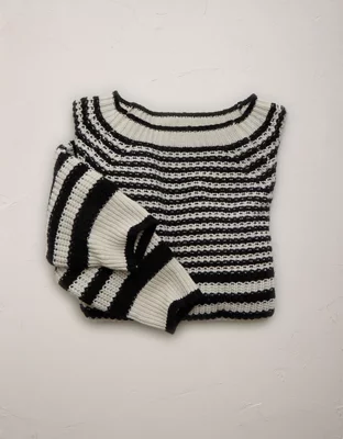 Constructed from a warm wool blend, this sweater features chic stripes and a nautical-inspired boat neck.