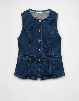 AE Crew Neck Button-Up Denim Vest
