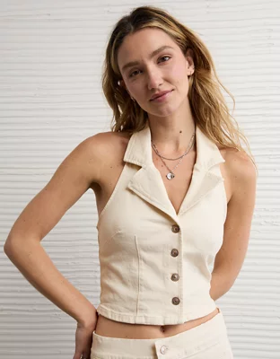 Iconic AE denim meets elevated workwear vibes in this chic halter vest.