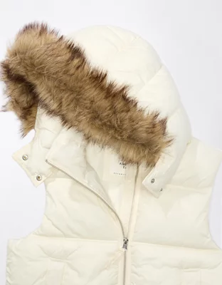 Kick off sweater weather season in this stylin' vest, featuring a faux fur trim hood for some extra cozy points.