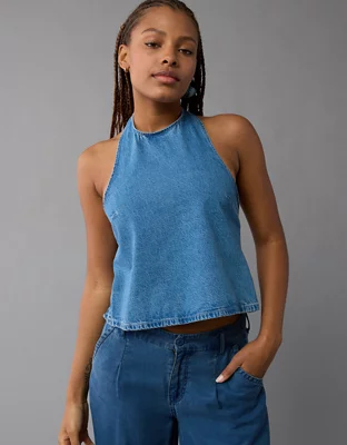 Breeze through life in this denim halter top, perfect for a boho chic summer look.