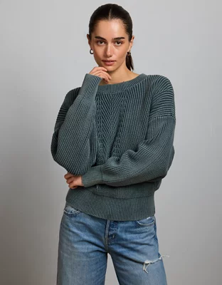 AE77 Open-Back Shaker Stitch Sweater