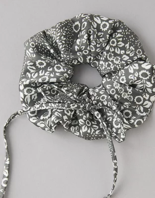 A femme floral scrunchie with a thin bow tie for a sweet touch.