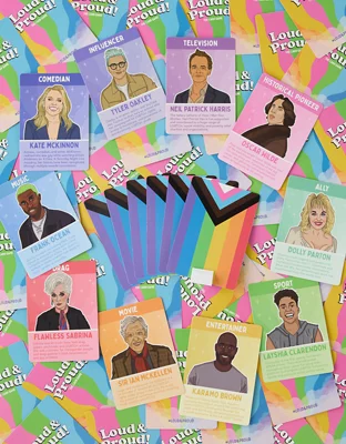 Loud & Proud is a super-speedy card game celebration of queerness. Fifty iconic personalities from 10 categories, including movies, music, and drag, are available for players to collect. Collect a full set. Snatch a flag. And win the game.