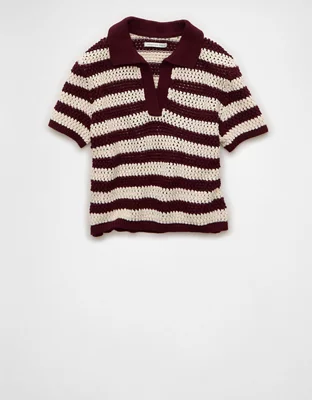 AE Cropped Crochet Sweater Polo Shirt